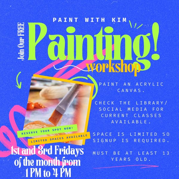Art in the Afternoon meets every Thursday from 2:00 PM to 4:30 PM. No formal instructions given - just show up with your stuff, paint, share, experiment, learn, and practice together.